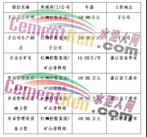 红狮集团诚聘管理人员,子公司总经理年薪50万~80万