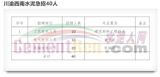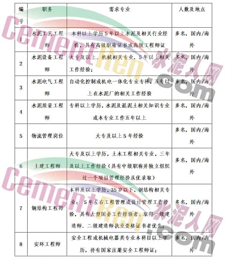 更多水泥集团岗位招聘,请继续关注水泥人网,或将简历发至水泥人网编辑部邮箱。