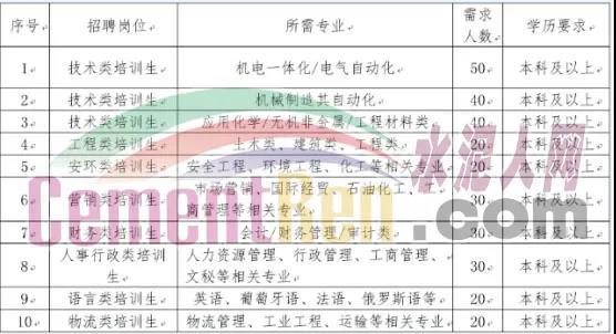 尧柏水泥招聘包括水泥工艺、设备、电气、土建、钢结构、安环、自动化、智能化、水泥研发工程师和办公室主任、财务经理、市场经理、人力资源经理等行政岗位共计17个岗位多名员工,且有机会赴海外项目部工作。