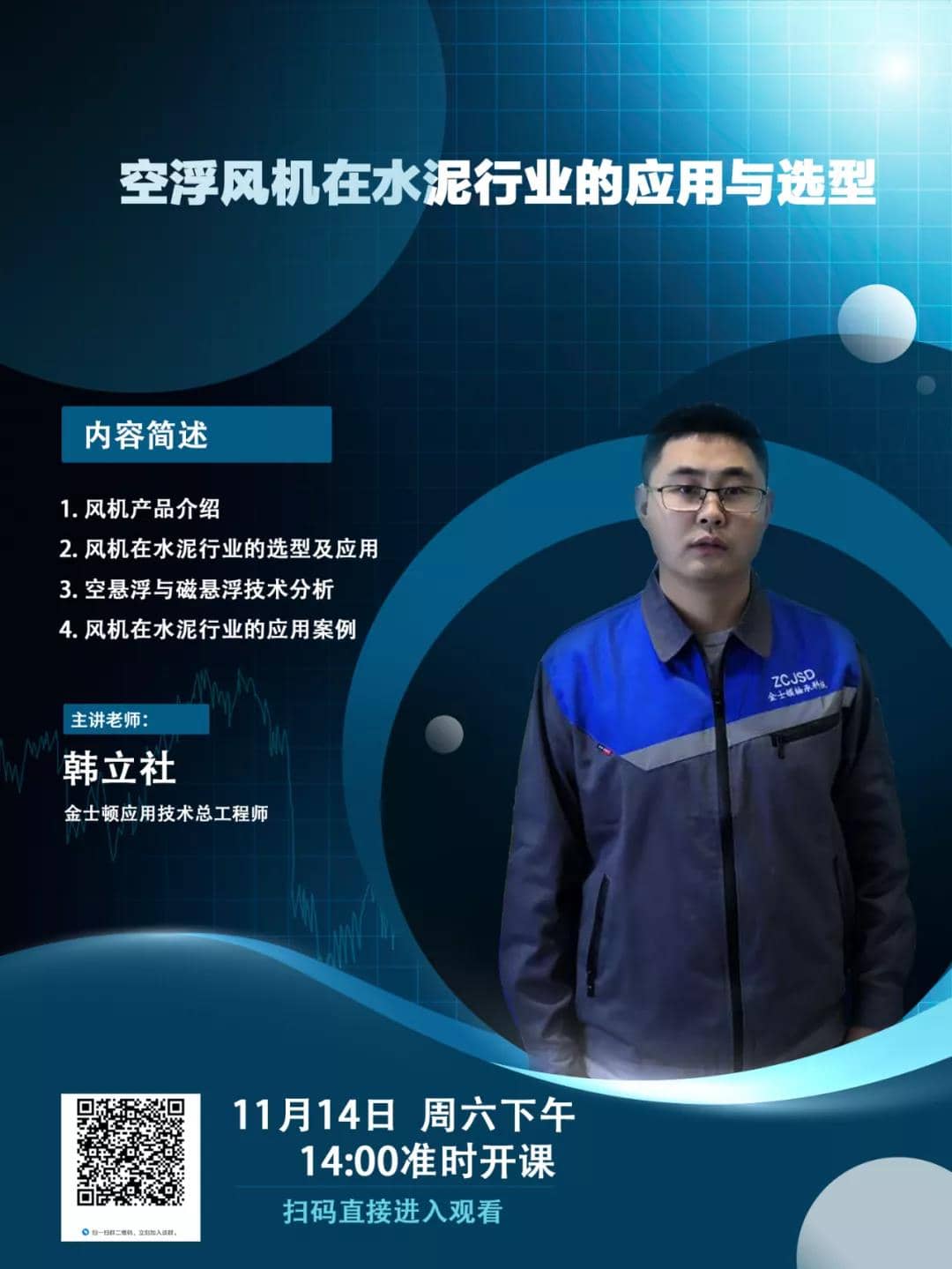 针对目前国内鼓风机行业的发展现状,以及水泥企业在鼓风机选择方面遇到的种种问题,国内首家空气悬浮离心鼓风机生产制造商--石家庄金士顿轴承科技有限公司(以下简称“金士顿”)技术应用总工程师韩立社将通过线上直播的方式为大家一一解答。