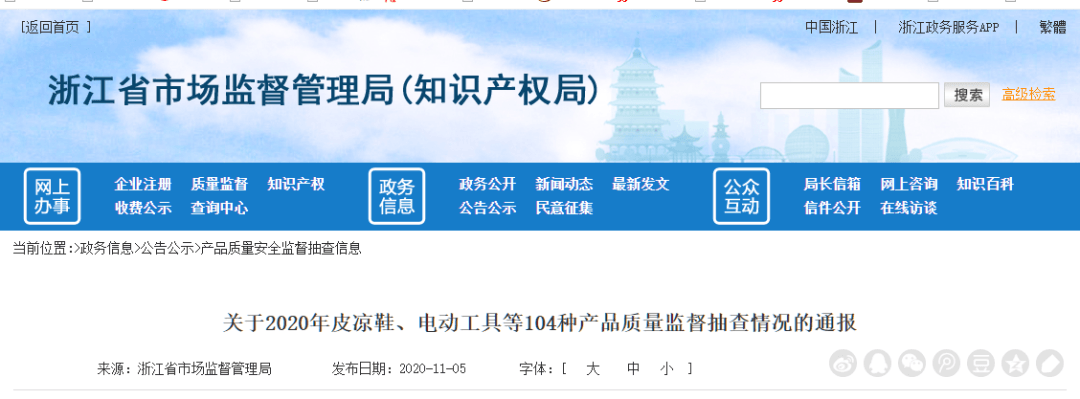 浙江省市场监督管理局网站发布关于2020年皮凉鞋、电动工具等104种产品质量监督抽查情况的通报。据通报,本次共抽查1835家企业生产的104种1835批次产品,发现119批次产品不合格,不合格发现率为6.49%。其中,水泥产品抽查了杭州、宁波、温州、湖州、嘉兴、绍兴、衢州、舟山等8个地区63家企业生产的63批次水泥产品,其中1批次产品不合格,不合格发现率为1.59%。不合格项目涉及氯离子。
