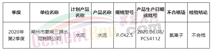 浙江抽查1家水泥企业1个批次水泥氯离子超标
