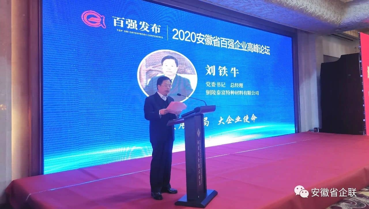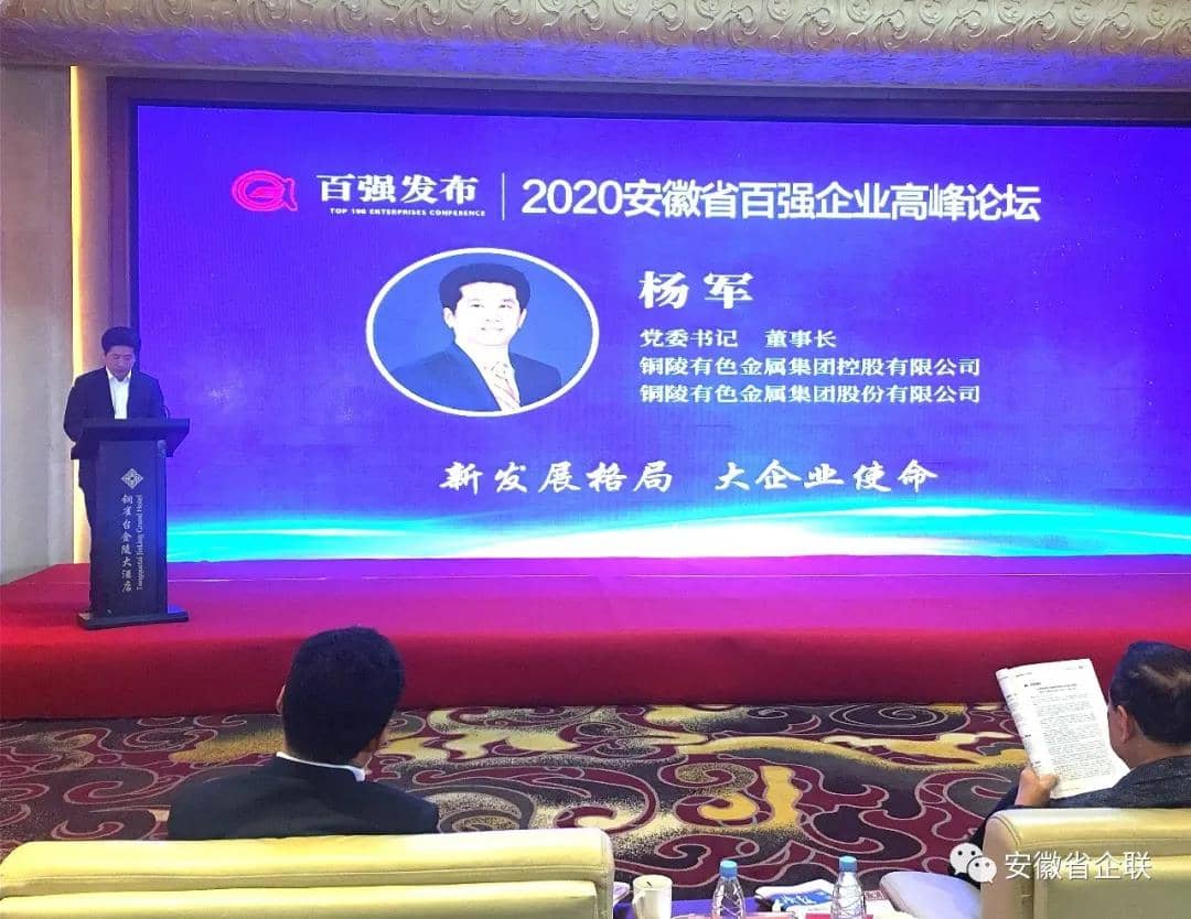 会议中,铜陵有色集团公司党委书记、董事长杨军,安徽海螺集团党委书记、董事长高登榜,铜陵泰富特种材料有限公司党委书记、总经理刘铁牛作为百强企业代表先后作交流发言。