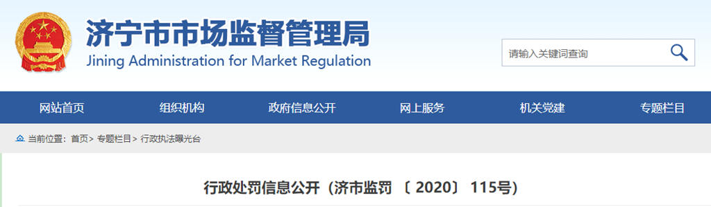 行政处罚信息公开(济市监罚 〔 2020〕 115号)