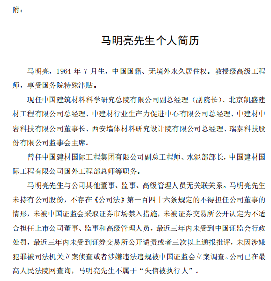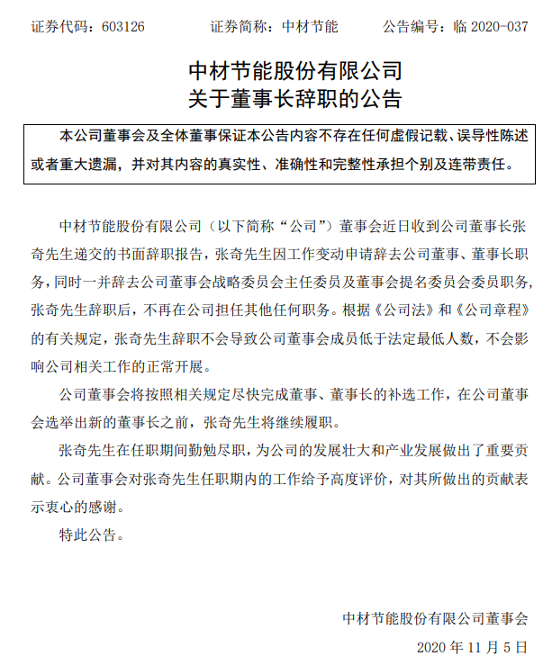 日前,中材节能发布公告称,公司高管发生人事变动。具体事项如下: