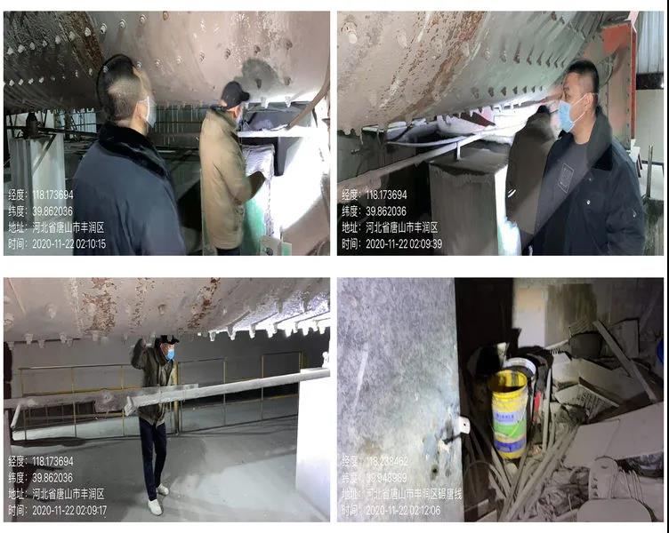 丰润区生态环境分局吴志文副局长带队检查天路建材有限公司,该厂未生产,布袋落灰处未封闭,责令限期整改,进行封闭处理。
