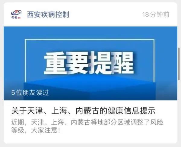 西安疾病控制中心再次发布健康提示,11月7日以来,天津市滨海新区东疆港区(含瞰海轩小区)、汉沽街、中心渔港冷链物流区A区和B区;上海市浦东新区祝桥镇营前村、新生小区、周浦镇明天华城小区、张江镇顺和路126弄小区的来返人员;内蒙古呼伦贝尔市满州里市东山街道、北区街道的来返人员,请主动向所在社区报备相关活动情况,配合各区县(开发区)疫情防控指挥部落实集中隔离等疫情防控措施,在管控当天和第13天各进行一次核酸检测。