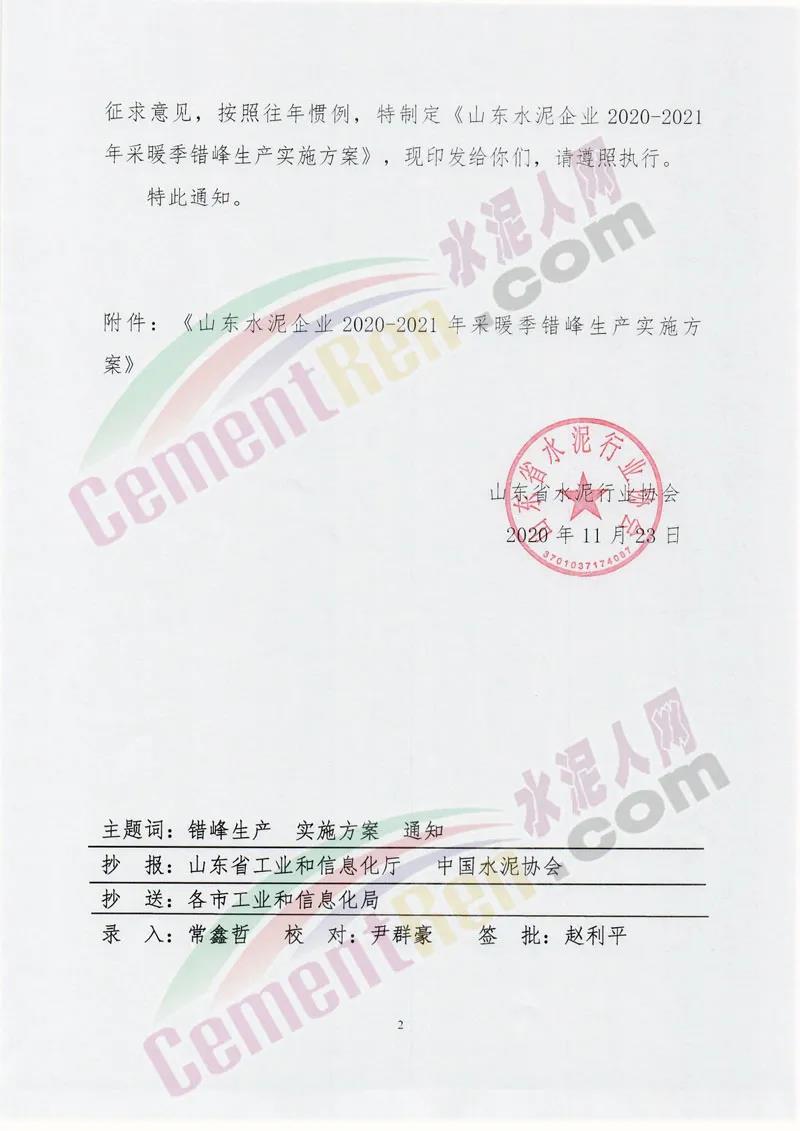 2、经批准承担特殊任务的企业于2020年11月30日前将 承担特殊任务的申请、补足错峰生产时间计划方案报山东省水泥行业协会备案。
