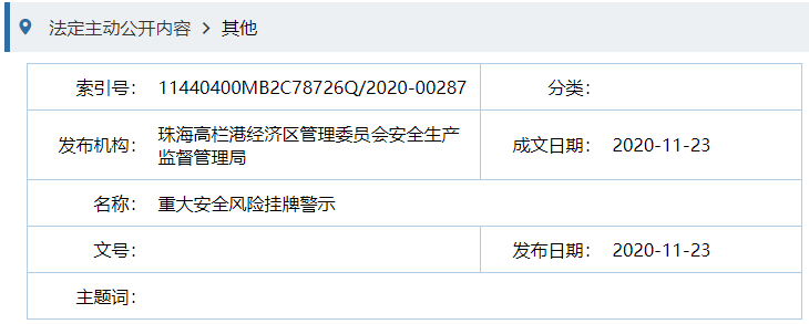 来源:珠海高栏港经济区管理委员会安全生产监督管理局