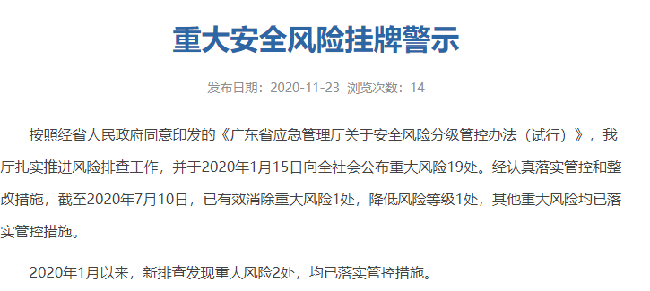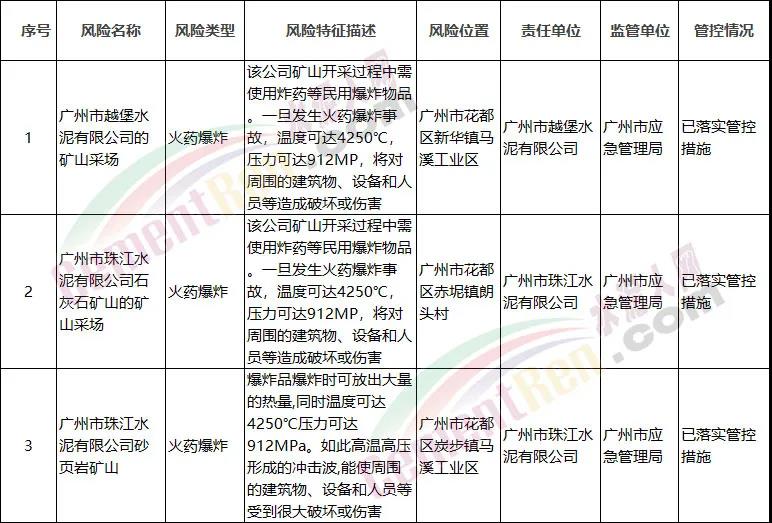 经认真落实管控和整改措施,截至2020年7月10日,已有效消除重大风险1处,降低风险等级1处,其他重大风险均已落实管控措施。2020年1月以来,新排查发现重大风险2处,均已落实管控措施。其中涉及水泥企业的3处矿山,分别为: