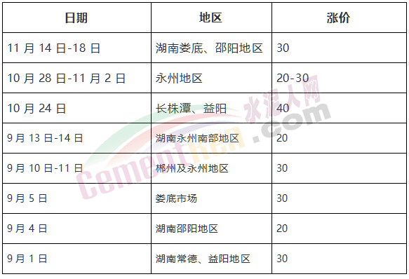 下半年以来,湖南地区分别在11月中下旬,10月下旬及9月份中上旬分三轮上调水泥价格,累计上调达100元/吨。