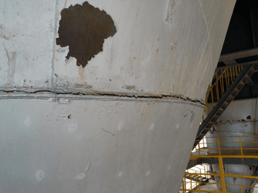 还有一个更棘手的问题就是使用钢板仓难以及时发现隐患。使用钢板仓固然能降低一部分投资成本,但同时也需承担巨大的安全风险及后期维护成本,如除锈、防腐、精细操作、高空修复费用等。从以上发生的钢板仓坍塌事故中不难看出,钢板仓存在的隐患很难被预先察觉,特别是高处焊缝开裂情况基本没法近距离巡检出来。