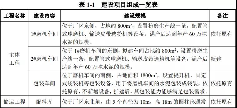公示文件称,该项目位于安徽省霍山经济开发区经五路,总投资6000万元,其中环保投资33万元。项目性质为扩建,主要扩建内容为在原有年产60万吨水泥粉的工程基础上,拟再扩建一条水泥粉磨生产线,新建水泥磨车间一座,联合堆棚 2 座,矿粉库一座,其他辅助设备依托原有项目,项目扩建后达到年产120 万吨水泥的生产能力。