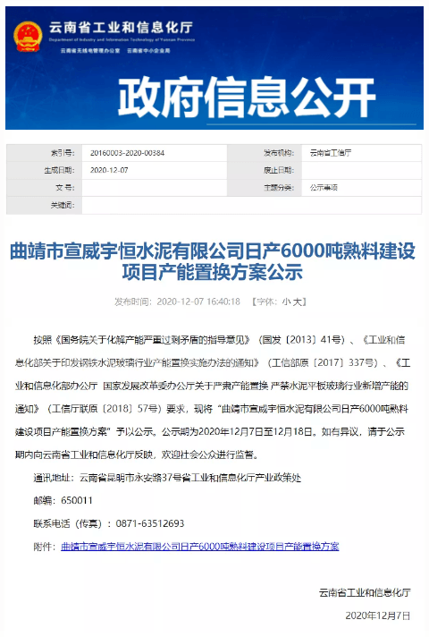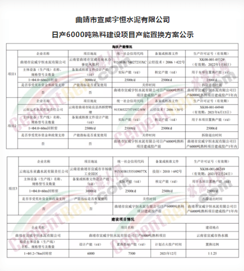 曲靖市宣威宇恒水泥有限公司日产6000吨熟料建设项目建设地位于云南省宣威市热水镇。新建项目设计产能6000t/d,关键设备1×Φ5.2×78m回转窑一台,置换指标产能7500t/d,置换比例1:1.25,计划点火投产时间2021年12月。
