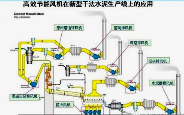 用风就得有风机,风的重要性就是风机的重要性。对于水泥生产来讲,需要风机的地方实在是太多了,一个中等规模的水泥厂,仅就大型风机而言就有几十台之多,还需有多种规格的小型风机上百台。比如大型风机(主要是离心风机),对水泥生产的能耗有着较大影响。