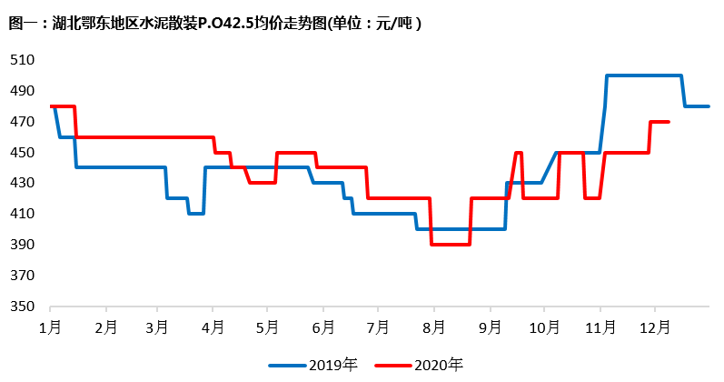 国庆中秋双节期间由于雨水天气持续时间较长,工程进度缓慢情况下,水泥销量偏低,多数水泥企业水泥和熟料库存高位,加上外来水泥冲击,10月中旬鄂东区域水泥价格上调未能落实。10月下旬,天气好转后,水泥销量整体提升较好,11月初,部分水泥厂家水泥及熟料库存下降,水泥供应出现紧张,价格上涨30元/吨得以落实,外来水泥随之跟涨。11月中旬起湖北地区整体雨水天气偏多,水泥价格整体持稳。11月下旬,武汉地区水泥企业计划再次通知上调价格,上调幅度为30-40元/吨,由于11月份降雨天气较多,水泥厂库存有所增加,本轮涨价11月能得到有效落实。12月初,天气好转后,武汉地区水泥落实上涨20元/吨。