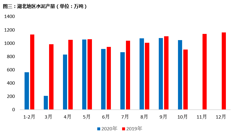 据国家统计局数据显示,2020年10月,湖北地区水泥产量为1049.33万吨,同比上升13.7%。湖北水泥市场需求相较于去年有所回落,据国家统计局数据显示,截止2020年10月,湖北省房地产总投资为3843.42亿元,同比下跌11.8%。市场需求不佳情况下,产量同比上升,外来水泥持续冲击,湖北地区水泥价格后续上涨难度加大。