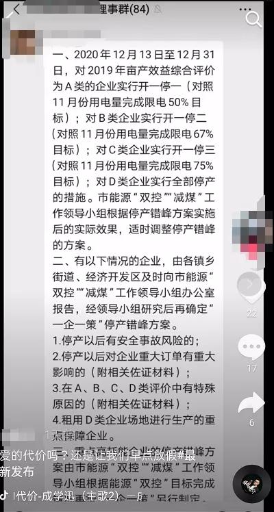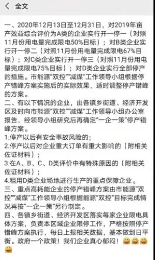 除以上地区外,湖南怀化、永州等地也已于12月5日起正式启动有序用电。网络上也有不少工厂“晒”出了现状并表示,确实已经开始限电和停限产了。