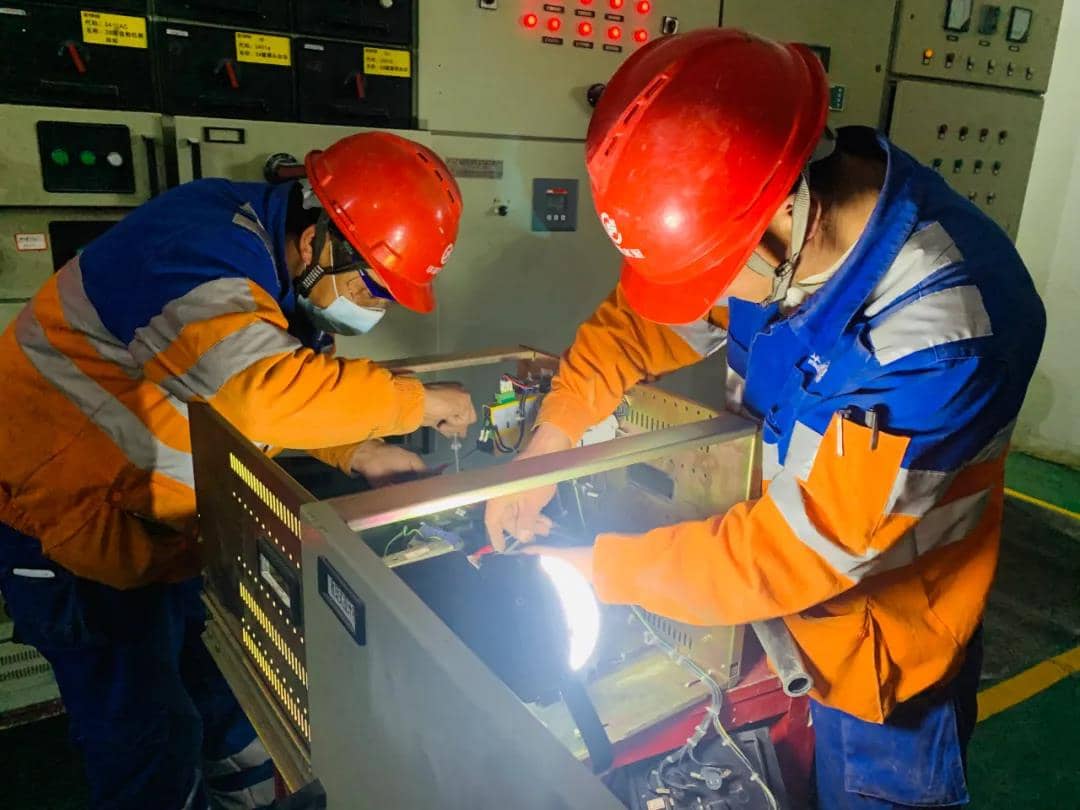 电修人员对配电柜进行检查