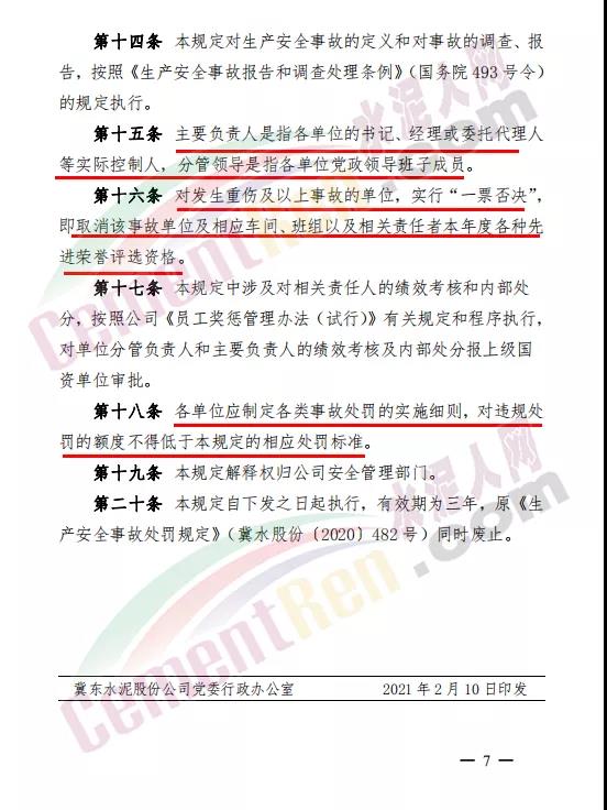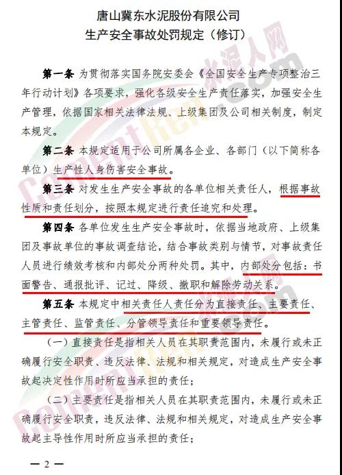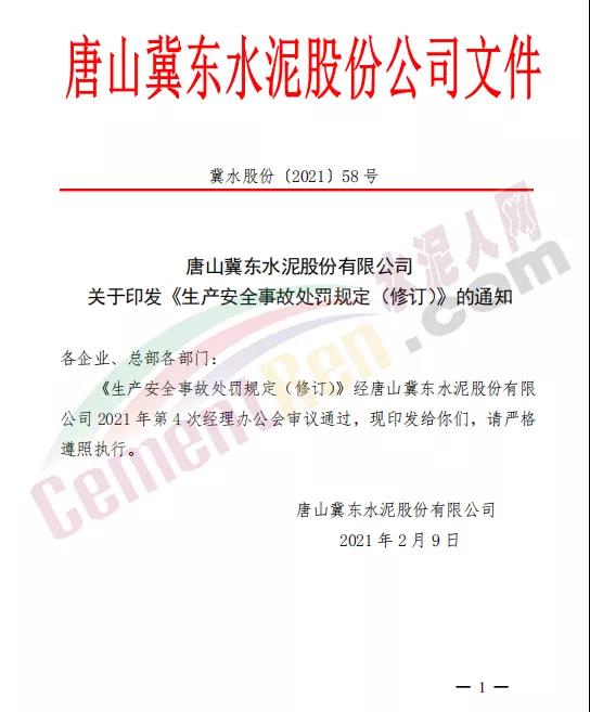 唐山冀东水泥股份有限公司《生产安全事故处罚规定》全文如下: