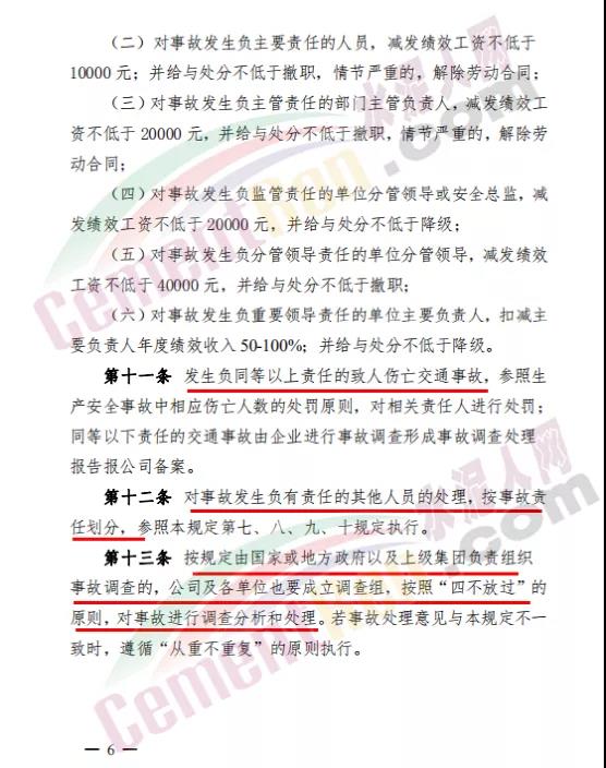 据水泥人网了解,金隅冀东内部一直都有规定,凡发生事故的企业从上至下全部处以金额不等的罚款,年终奖励也按比例减少,相关责任人甚至会被降职或者辞退。