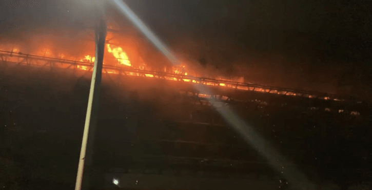 2021年3月9日深夜23:30南京雨花台区板桥一家水泥企业突发大火,火势蔓延迅速。119十多辆消防车赶到现场处置,经了解起火点是传输皮带,远处看呈现一道火龙,经过消防队员一个多小时喷水才将明火基本熄灭。