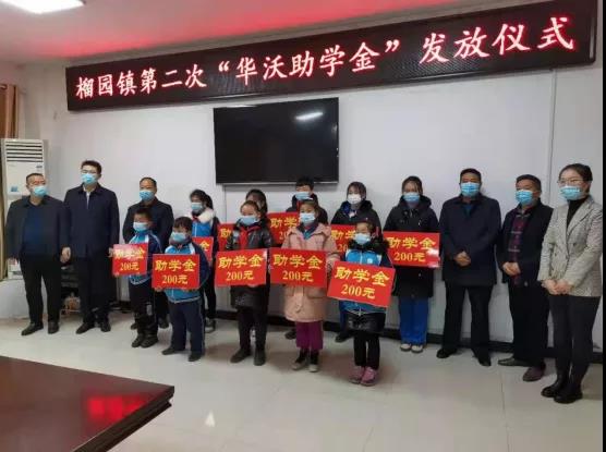 同时,在扶贫助学路上,华沃水泥更是走在最前沿。华沃水泥高度重视教育事业发展,为激励榴园镇学子勤学上进,为家乡培养优秀人才,造福桑梓,华沃水泥特在榴园镇设立“华沃奖学金”。自2019年起,每年为榴园镇赞助20万元奖学、助学金(15万元用于奖学金,5万元用于助学金)。展现了企业回报社会的初心和关心教育的良好形象。