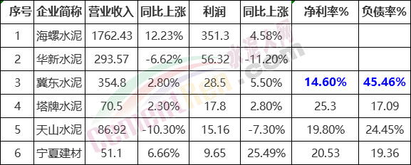 近日,冀东水泥、塔牌集团、华新水泥、海螺水泥、天山股份等多家水泥上市公司发布2020年年度报及业绩快报。冀东水泥销售净利率14.6%,负债率45.46%,接近50%。
