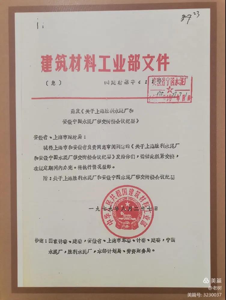 三位海螺创业者在宁国水泥厂大门前合影。中间者李迅,1988至1993年担任宁国水泥厂厂长。右边郭文叁,从1980年到2015年均在海螺渡过。1993年担任宁国水泥厂厂长,后担任海螺集团董事长至退休。左边高登榜,2015年起,担任海螺集团董事长。