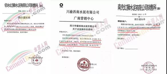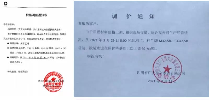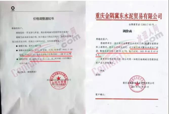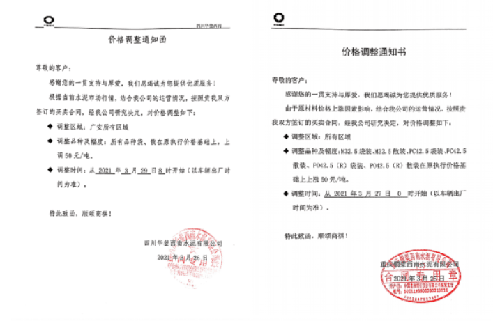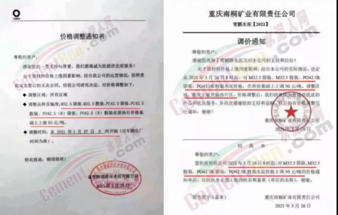 重庆市两次调价,50多家水泥企业价格上调超100元/吨
