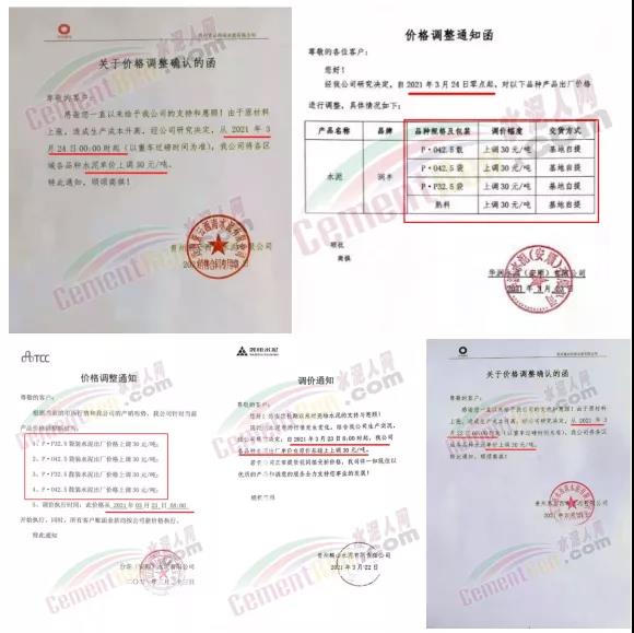 3月25日左右,河北唐山以及天津、北京等地主要品牌企业陆续通知上调水泥价格10-20元/吨。