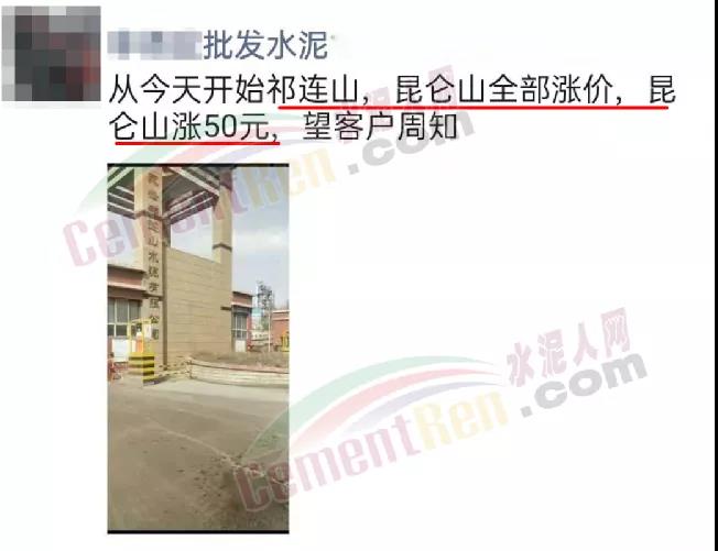 甘肃省主要品牌企业上调水泥价格,最高涨50元/吨