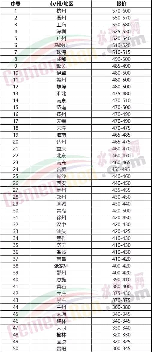 来源:水泥人网信息中心人工采集,如与实际成交不符,请以实际成交价格为准。