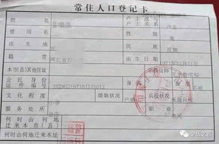 ▼金德强户口本