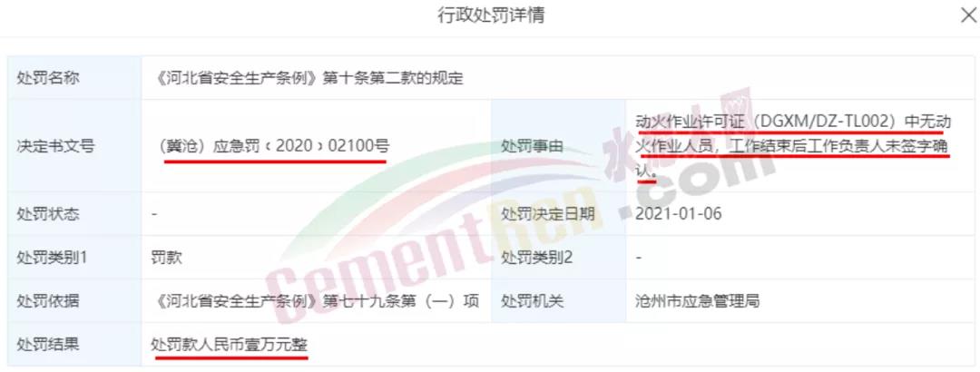 处罚决定书文号:(冀沧)应急罚﹝2020﹞02100号