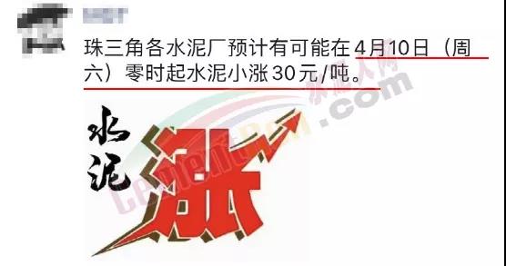 水泥人网通讯员消息,本周六(4月10日)起珠三角区域水泥价格或将再涨30元/吨。