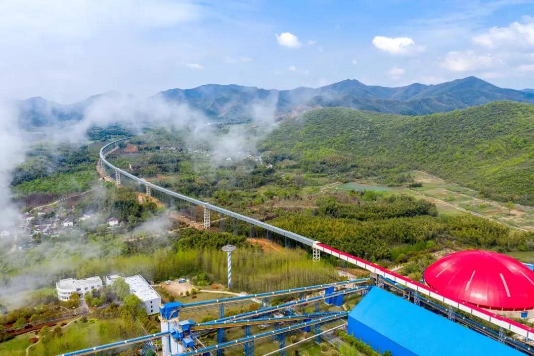 4月8日,长兴县煤山镇直通安徽省广德市的空中水泥熟料运输长廊进入试运行。该长廊总长里13.5公里,采用全封闭、全架空的数字化全电运输,它的建成有助于降低水泥熟料产品运输成本,杜绝货车运输过程中抛洒、扬尘及尾气污染等问题,全过程零排放。该段与长兴境内的22公里运输长廊连接,成为全国首个跨省数字化“全电物流”项目。