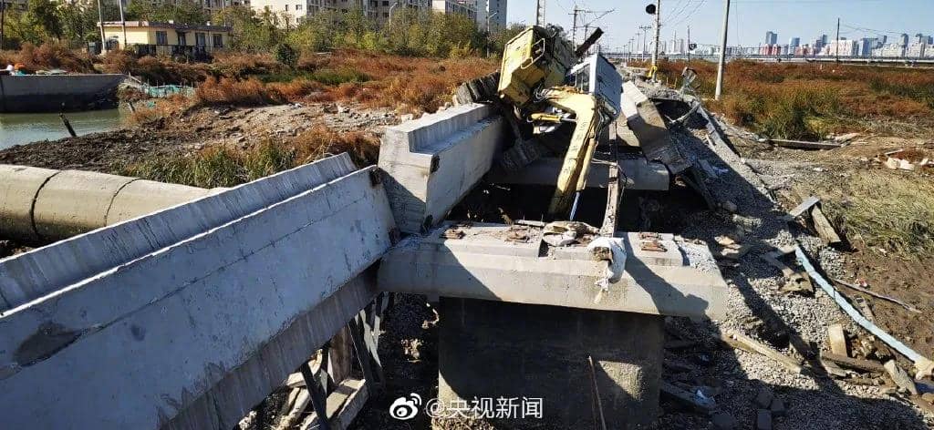 坍塌事故发生时,正在进行桥上人工配合小型挖掘机平碴作业。该桥总长度32.54米(坍塌长度24米)、宽4米、厚度0.7米,桥梁悬空高度约3米,桥下为大沽排污河分支。