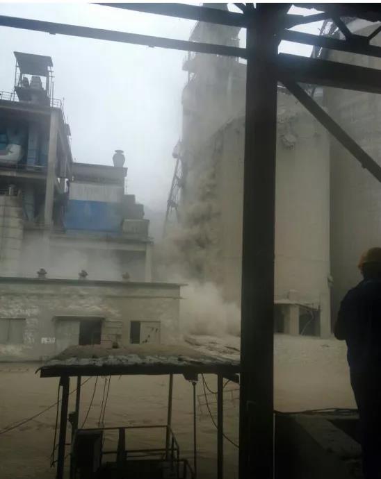此前,云南某水泥企业曾发生过一起水泥库倒塌事故。工人发现水泥库库中间有个裂缝,上午上报总部,以为高大的水泥库能撑一撑。谁知到下午裂缝处就开始往外冒水泥,从开始冒水泥十分钟不到水泥库就倒塌了,好在无人员伤亡,仅部分现场人员眼睛进了水泥灰,后经送医清洗痊愈。