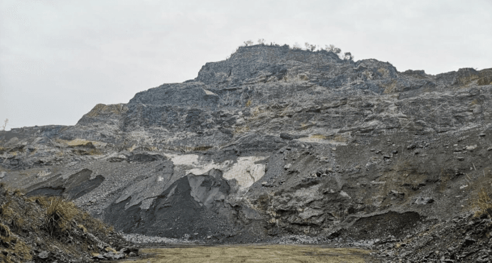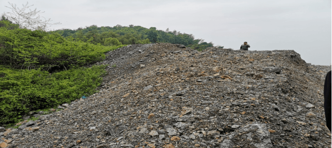 图2 盛安工贸开采废石依山倾倒,破坏生态