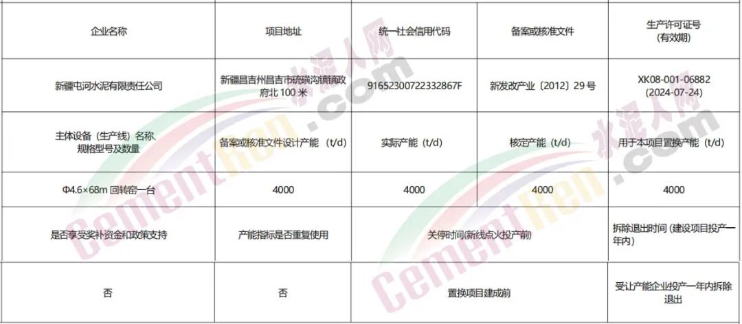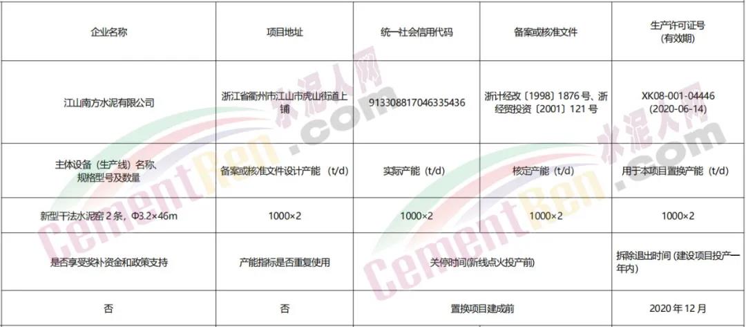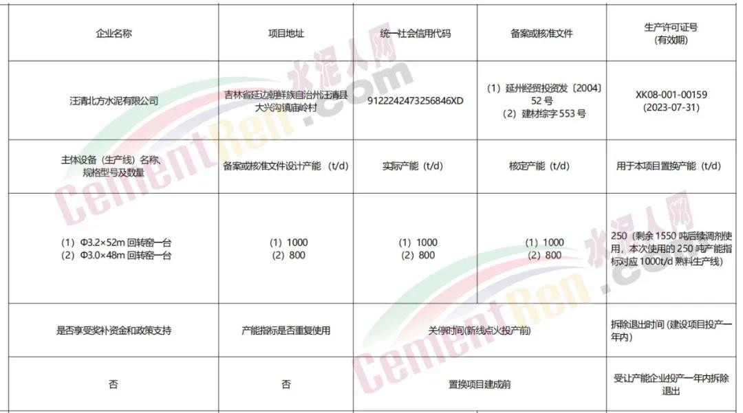 据水泥人网了解,2020年11月广西壮族自治区工业和信息化厅发布《关于崇左南方水泥有限公司5000t/d熟料水泥生产线项目产能置换方案的公告》提到,崇左南方水泥有限公司通过退出江山南方水泥有限公司两条1000t/d生产线,汪清北方水泥有限公司一条1000t/d和一条800t/d生产线以及新疆屯河水泥有限责任公司一条4000t/d生产线,合计退出6250t/d,用于建设一条5000t/d生产线,计划投产时间为2021年12月。