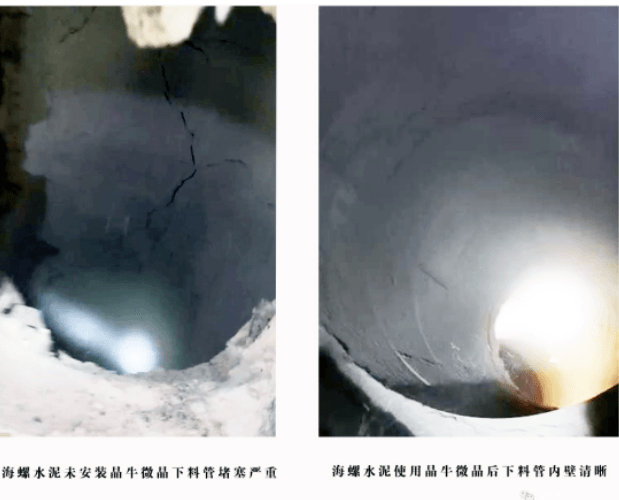 据了解,金隅赞皇水泥有限公司是国内第一家和晶牛微晶集团股份有限公司(以下简称“晶牛微晶”)合作的企业,针对金隅赞皇水泥窑预热器易结皮的问题,晶牛微晶将其专利产品四耐微晶安装在预热器的关键部位。经过三年多的生产试验证明,微晶内衬在水泥窑尾室的耐热性,能满足正常生产≥1200℃的高温要求,未发生脱落、烧裂现象。在未清理的状态下,微晶内衬处浮尘只有2mm,且易于清理,吹扫即掉落,达到了抗结皮性能的要求,使每小时需多次放炮崩渣、每班需人工清结皮的繁重危险的工作成为历史。