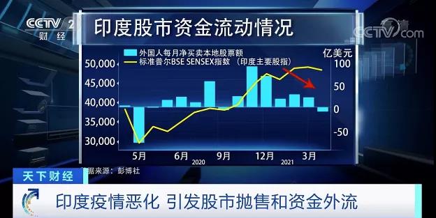 印度疫情恶化,日增数据飙升,使得投资者们对于印度经济复苏和上市企业财报的信心都有所弱化,这引发了股票市场上的抛售和资金外流。彭博统计数据显示,截至23日的4月份,海外投资者抛售了总值11亿美元的印度股票,这是去年3月份以来最大规模的月度资金外流。