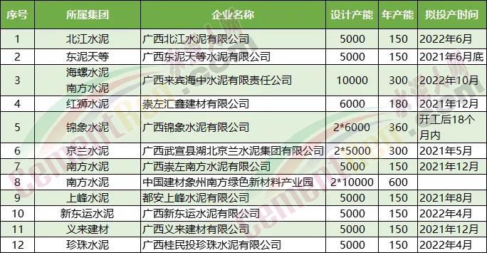 日前,广西壮族自治区工信厅发布了截止到2019年12月31日的63条水泥熟料生产线清单,涉及海螺、南方、红狮、华润、台泥、鱼峰、虎鹰等多家水泥企业,合计产能达到7882.5万吨。