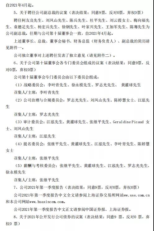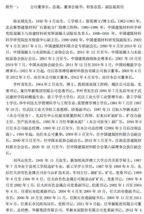 日前,华新水泥股份有限公司发布第十届董事会第一次会议决议公告。称,选举徐永模先生为公司第十届董事会董事长。任期三年,自2021年4月起。