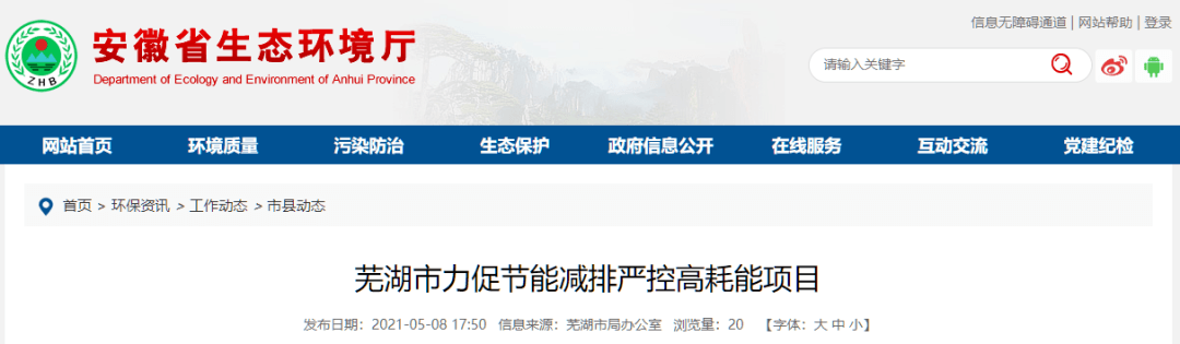 日前,水泥人网自安徽省生态环境厅获悉,近日,芜湖市2019至2020年新增10个高耗能项目均通过省发改委合理用能评估。