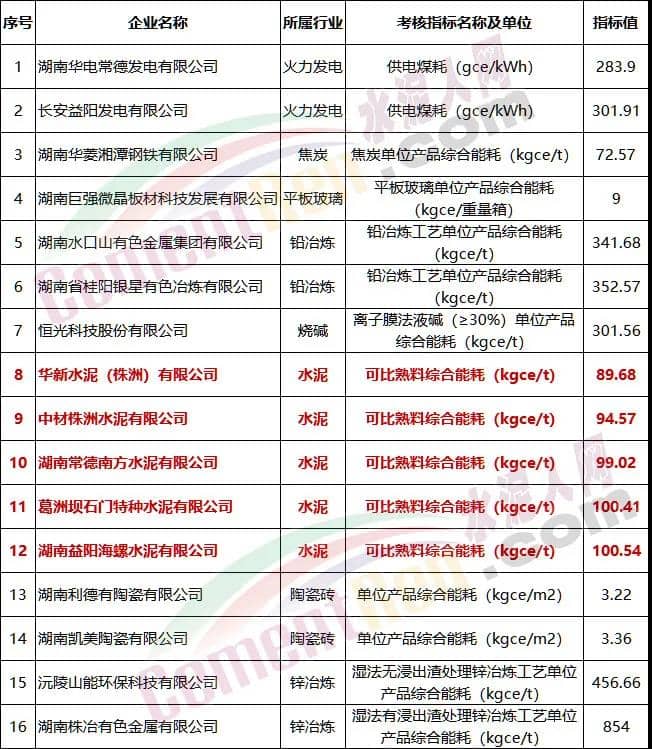 湖南省重点工业行业能效头雁入围企业名单(第一批)