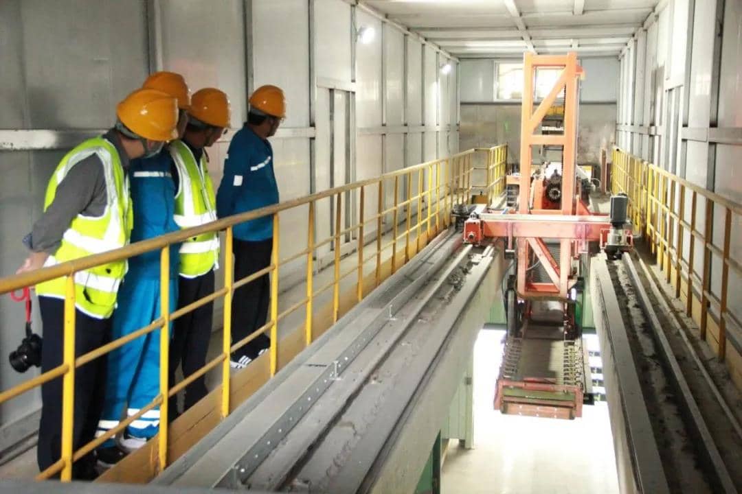 在观摩现场,观摩团分时分批进入参观。“整齐有力的机器人手臂、干净整洁的发运现场,来往不断的发运车辆”,代表们对益阳水泥运用水泥装车系统取得的科技创新成果表示赞许,并表达了在本公司加快布局实施的意愿。实地参观结束后,海螺中南智能合资公司技术人员详细介绍了该系统的功能及构成,并针对观摩团提出的水泥包装袋质量要求、破包情况的处理、设备故障处理流程、收尘系统及能耗等问题都一一进行详细的解答。