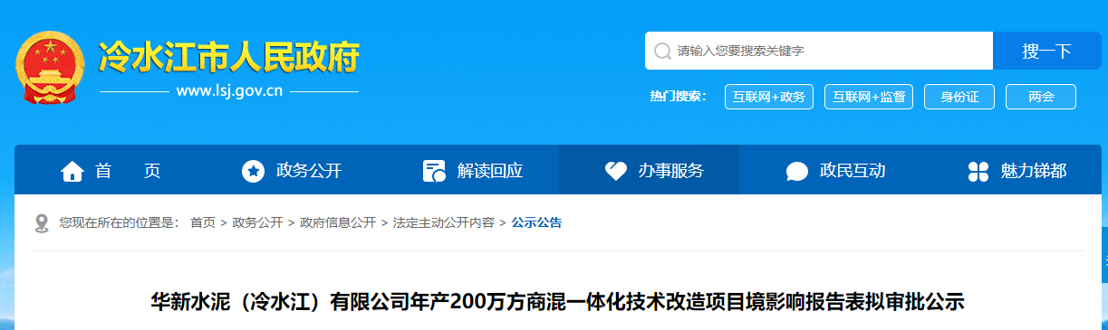 根据建设项目环境影响评价审批程序的有关规定,我局拟对《华新水泥(冷水江)有限公司年产200万方商混一体化技术改造项目环境影响报告表》进行审查。现将拟审查的环境影响评价文件基本情况予以公示,公示期为2021年5月7日——2021年5月12日(5个工作日)。听证权利告知:依据《中华人民共和国行政许可法》,自公示起五日内申请人、利害关系人可提出听证申请。