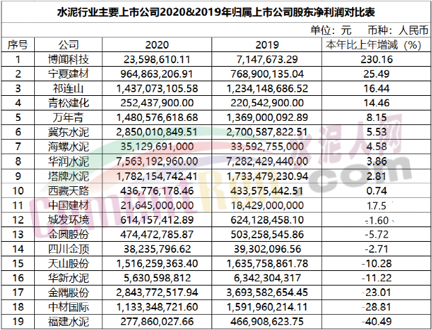 对此,相关行业人士分析认为,2020年行业销售旺季水泥价格的连番上涨,提高带动了水泥行业年度整体利润的增长。